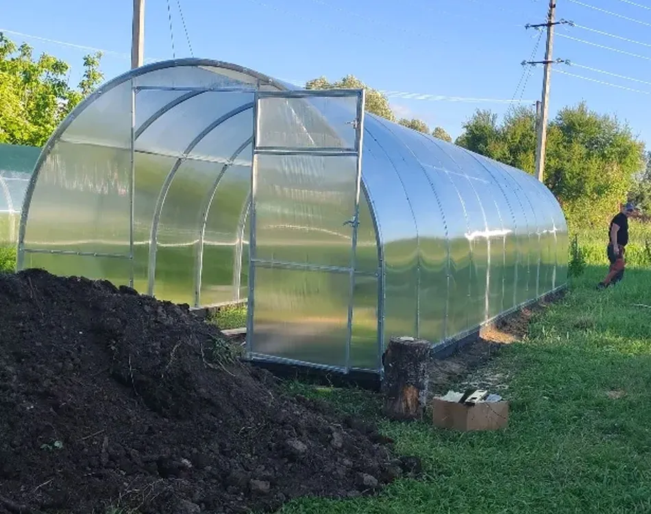 «Решили заменить старую теплицу на новую, обратились в эту компанию по совету соседей. Всё сделали чётко и по срокам. Каркас крепкий, поликарбонат плотный, крепления надёжные. Внутри удобно перемещаться даже с инструментами. Остались очень довольны подходом к работе и общением с менеджерами — вежливые и терпеливые. Советую!»